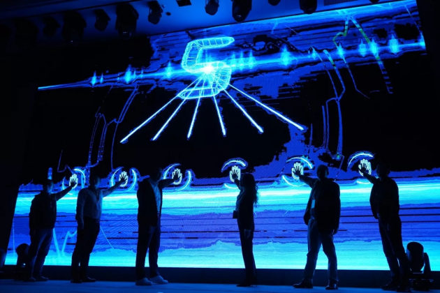 在主持人的引领下,大会灯光变暗,代表着智慧、勇气、治愈、精神力量的雄鹰在会场内翱翔,随着雄鹰栖落舞台,欢乐消2在聚光灯中震撼亮相,全场沸腾。机器人全身喷雾围绕,闪烁着灯光,从台边自动行驶到舞台中央,灯光聚焦下再次将本次盛典的气氛推向高潮。