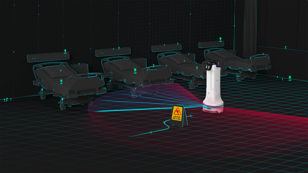 同时,机器人还配备了普渡科技的核心技术——机器人定位和导航技术,采用激光定位,可广泛应用于医院、学校、政府大厅等公共区域,帮助人们在公众场合免受感染的困扰,给人们安全和舒适的出行体验。