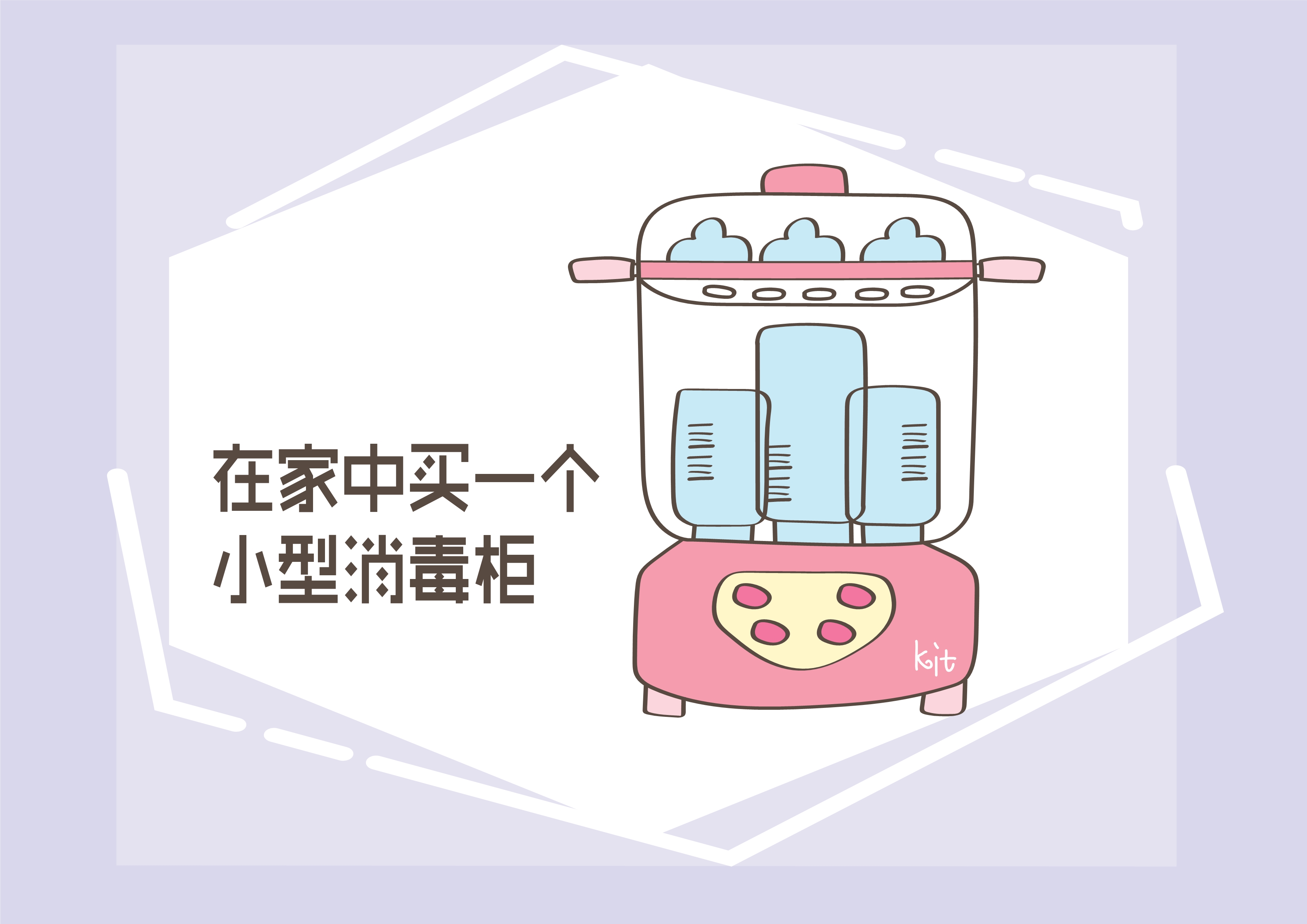 这里提示家长们正确的清洗方式,最好在上述清洗后,要将器具内部水分烘干,不然潮湿的环境下同样会有细菌在此滋生,有宝贝的家庭可以在家中买一个小型消毒柜,利用紫外线等原理进行器具消毒,这样就可以在一定程度上起到细菌危害健康的作用。