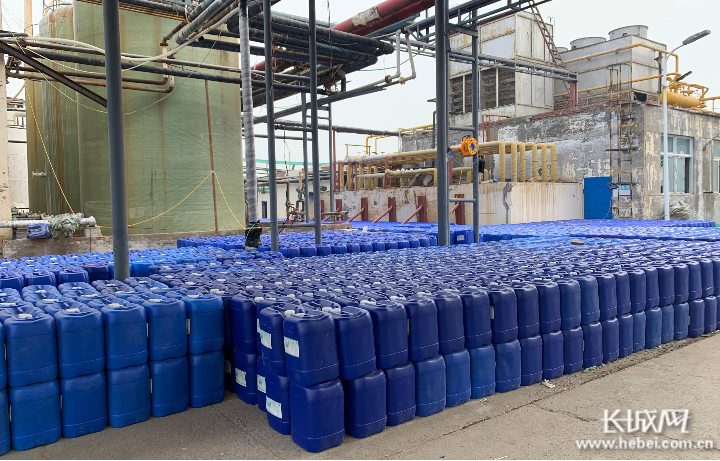 天津市爱心企业向隆尧县捐赠的100吨84消毒液。 刘越 供图
