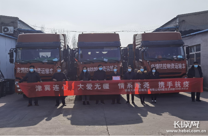 长城网讯(记者 魏亚慧 通讯员 赵欣 刘越)1月26日,天津市爱心企业郁峰化工有限公司向隆尧县捐赠的100吨84消毒液顺利抵隆,助力该县一线抗疫工作。