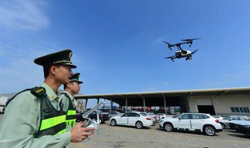 日前,福清边防大队在福清市江阴镇下石村建设完成了集信息应用先进、服务举措到位、硬件设施规范、应急机制完善、基础工作扎实等功能于一体的福州自贸区(江阴)警务综合平台,为更好的服务驻地经济发展建设打下了坚实基础。图为官兵利用无人机进行全方位治安巡逻。